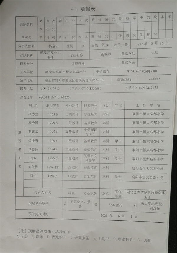 参与课题(2018年)